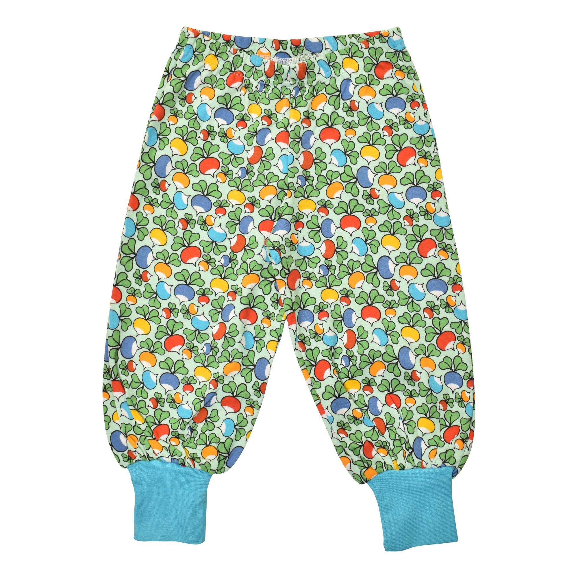 Baggy pants featuring a variation on the classic radish design. Comfortable and soft, with elasticated waist and long cuffs at the ankles.